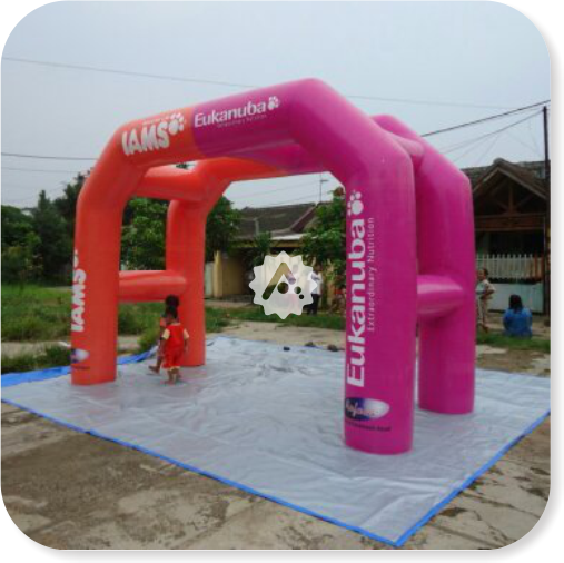 Balon gate menggunakan blower listrik sehingga dapat berdiri kokoh dan mudah dipasang dalam waktu singkat. - Desain Custom